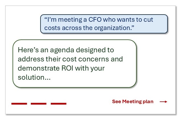 Provide information about your Buyer and business objectives, and GoSellX™ AI Assistants deliver talking points, key questions, and a compelling agenda.