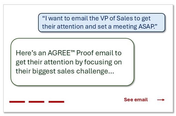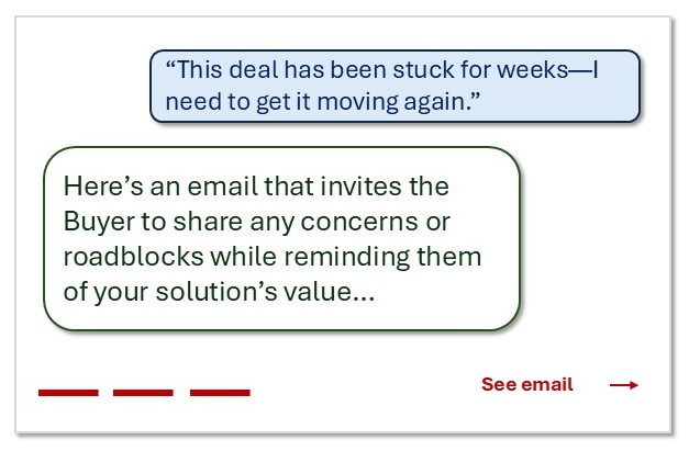 Tell GoSellX™ AI Assistants what you need and craft email messaging to refocus Buyers on your solution’s value.